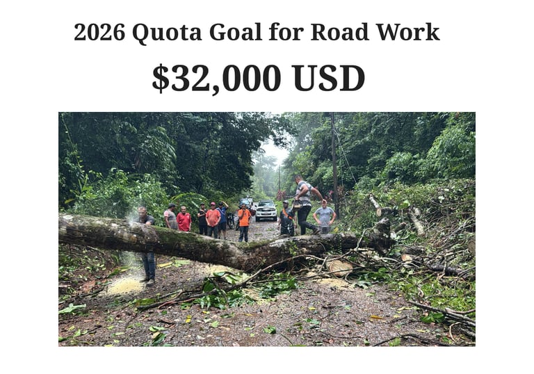 Every neighbor has the responsibility to maintain and clear the ditches in front of their property according to Costa Rica Law. Poorly management leads to erosion of the road. Repairs to the road are costly and causes safety issues when vehicles pass on narrow stretches