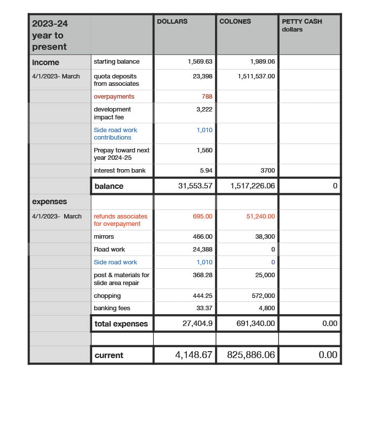 Here is the most recent financial report which covers the period of April 1 – March 16, 2024
