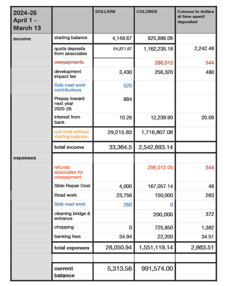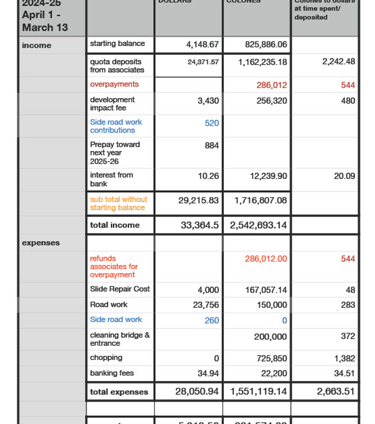 Here is the most recent financial report which covers the period of April 1 – March 13, 2025.